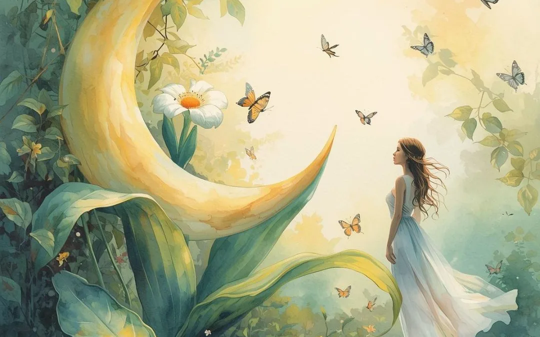 You will be guided into a field of transformation and inner brilliance with the help of the New Moon’s supportive energy. You meet a sacred Butterfly who shows you that change can be graceful as she guides you through a garden of Moon Flowers.